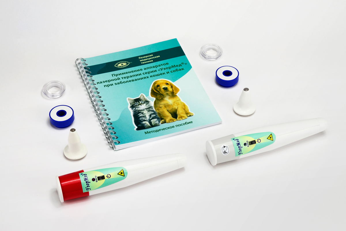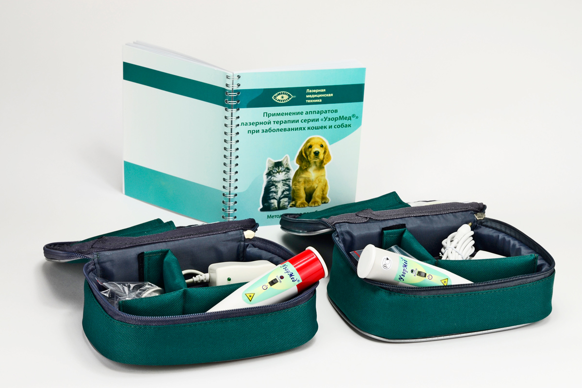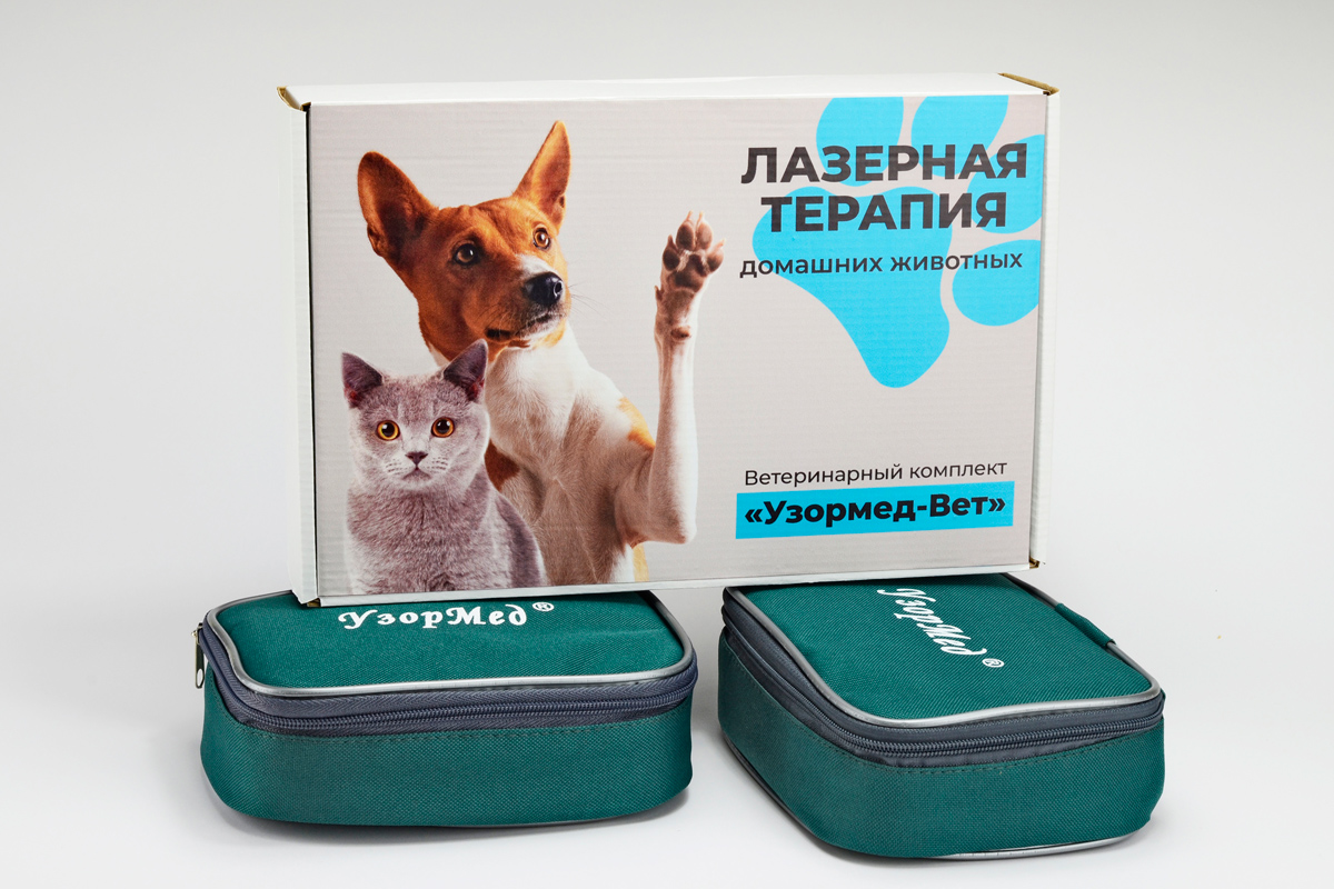 Лечебный комплект для ветеринарии состоит из аппаратов «УзорМед» и «УзорМед-650» и может быть использован для лечения и профилактики различных заболеваний животных путем непосредственного воздействия на очаг поражения кожных покровов и слизистых оболочек, проекции внутренних органов, общерегуляторные и рефлексогенные зоны. Лечебный комплект предназначен для лечения заболеваний опорно-двигательного аппарата, болезней органов пищеварения, урологических, гинекологических заболеваний, респираторных, хирургических, некоторых неинфекционных болезней кошек и собак, а также стимулирует иммунитет, повышает физическую выносливость, улучшает репродуктивную функцию.